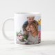Modern "we love you mom" bright colors graphic with 2 photos and custom text giant coffee mug.