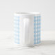 This adorable mug features a fluffy little hedgehog wearing a snow crown, reaching for delicate snowflakes. The background is a soft blue gingham pattern, giving it a cozy, storybook-like charm.