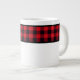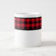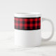 Preencham-Se! Esta caneca grande segura esse suco extra para mãe ou pai. Mostrada em fundo branco com uma bela banda de xadrez de búfalo vermelho e preto no topo da caneca com sotaque preto. Criado a coordenar com as nossas placas de janto de Xadrez de Buffalo em plástico ou na China. Personalize este item ou comprar conforme mostrado.