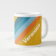 Caneca De Café Grande Yellow Retro Stripes with Name
