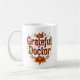Aproveite sua bebida favorita com esta caneca de Ação de Graças festiva para médicos. Possui um design sazonal com "Grateful Doctor" e espaço para adicionar seu nome personalizado sob o cartões de natal. Perfeito para uso hospitalar, catas de outono, ou como presente pensativo para heróis da saúde na estação dos obrigados.