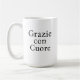 Express heartfelt thanks with this "Grazie con Cuore" Baby Shower Keepsake Mug, featuring the Italian phrase meaning “Thanks with Heart” in a soft black serif font on a crisp white mug. Perfect for filling with candies, small treats, or other favors wrapped in cellophane, this mug makes a thoughtful and stylish keepsake for family, close friends, or special guests. Ideal for baby showers, it adds a charming and practical touch that will be treasured long after the celebration.