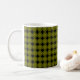 Esta caneca tem um design moderno do século médio de diamantes negros sólidos dentro de diamante preto em um campo de verde.