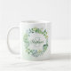 Caneca De Café Greenerescer Wreath Watercolor Nome do Monograma