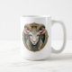 Start your day in the world of Grimmloch with this striking fantasy coffee mug featuring the official emblem of the narrative-based RPG by Opulent Code LLC. The detailed horned goat crest, set against rich teal and gold tones, creates a bold, immersive design that stands out with every sip.