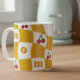 Transport yourself back to the groovy 70s with this vibrant distorted checkerboard mug design. Featuring a playful pattern of sunny mustard yellow and crisp white squares, interspersed with adorable cherry motifs, this mug is a perfect nod to the kitsch kitchen aesthetic of the era. Its retro charm makes it an ideal addition to your morning coffee ritual or a delightful accent piece of dopamine decor for your home. Enjoy a touch of nostalgic fun with every sip. Mom is editable for short names or initials.