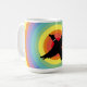Esta caneca de café apresenta uma silhueta de pato entre um padrão de círculos retrorreflectores do arco-íris. Você pode transferir este design colorido para outros tipos de bebidas e presentes. Arte original por Wilderness Store