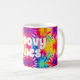 Design de caneca de café divertida com um fundo colorido de cor retrorada com um texto personalizável de "vibrações de ranhura" hippie.