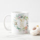 Com uma delicada guirlanda floral de aquarela, esta caneca botânica elegante de aniversário de 50 anos de casamento pode ser personalizada com as suas informações especiais de aniversário dourado em tipografia dourada elegante. Desenhado por Thisisnotme©