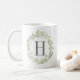 Caneca De Café Guirlanda de verde com aquarela e monograma