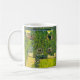 Café Mug com a pintura a óleo de Gustav Klimt A Casa de Guardaboschi (1912). Esta obra-prima Art Nouveau retrata uma casa grande adornada em lindas vinhas verdes. Flores decoram o pátio da frente. Um presente fabuloso para fãs de Arte Nouveau e de Arte Austríaca!
