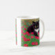 Coffee Mug com um gato gustav Klimt tuxedo! Este adorável gatinho preto e branco se senta num campo de flores vermelhas, azuis, brancas e laranja. Um presente incrível para amantes de gatos e entusiastas de arte austríacos!