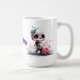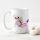 El diseño de la taza temática de Halloween presenta dos calaveras bebés adorables con detalles simpáticos que resaltan su ternura, rodeadas de elementos festivos de la temporada. Encima de las calaveras, la palabra "Halloween" aparece en una fuente curvada, dándole un toque dinámico y divertido. Los colores juegan con contrastes oscuros y vivos, como el negro, blanco y toques de naranja, creando una atmósfera perfecta para celebrar la festividad de manera lúdica y encantadora.