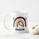 Uma caneca de café de Halloween com um arco-íris desenhado à mão em laranja festivo e preto, com aranhas e sotaques de cotovelo. Personalize com um nome para torná-lo um presente sazonal único para professores, colegas de trabalho, crianças ou amantes de café. Um design divertido e amigo da família perfeito para as manhãs de outubro, presentes na sala de aula ou noites de outono confortáveis.