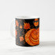 Dramático traído à mão Jack o-Lanterna Pumpkin e Folhas em preto para as suas comemorações de Halloween numa caneca que pode ser personalizada com uma mensagem, nome ou iniciais.
