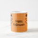 Caneca De Café Halloween Witch & Bats Orange Plaid Custom Name