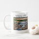 PERSONALIZE/ Modern Brook Painting Coffee Mug, Serene Painting Scene Of A Brook, Still water with A Stream Running over Colorful Rocks, Forest Greens In the Back Ground, Personalize , Change the text to something more meaningful to you. Click the' 'Personalize this Template', Button. use your Backspace Key to remove template words, type in your own few words, place your order.