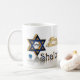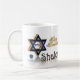 Ilustração de caneca Chanukkah Shalom com texto 3D e Estrela Azul e Dourada de David: Shalom, fé judaica.