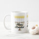 A ilustração das velas de Chanucá com a caneca com sinal de texto 3D da fé judia, Shalom.