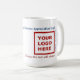 Make your own modern custom business appreciation mug for your staff employees, complete with your business logo, slogan, a few words of appreciation and website address. Upload your logo to replace the image you see now on this mug (an image where you can read the text "Your Logo Here"), and personalize the line "Happy Employee Appreciation Day!", company slogan, employee name, and employee title.