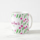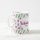 Happy Valentine's day coffee mug decorated with pink tulip pattern on white background.
