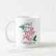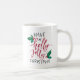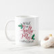 Festive holiday mug features the quote "have a holly jolly Christmas" in red hand lettered typography accented with red and green holly leaves and berries.