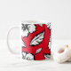 Uma caneca de café floral de Hibiscus em vermelho.