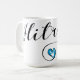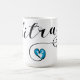 Mug com bandeira de Hitra em um coração, com design de fonte com script.