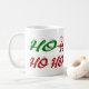 Mug com ho ho no texto 3D e Papai Noel. Personalize-o com a sua própria fotografia. Mug disponível em vários estilos e cores. Faz um presente de Natal excelente para beber bebidas quentes em noites frias durante as férias.