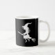 Uma bruxa assustadora voando com uma vassoura, e o ditado bonitinho, Hocus Pocus, preciso de café para focar, fazer este é um acessório ou presente divertido para o Halloween.