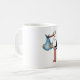 Mok met vrolijke Illustratie van een ooievaar die een baby jongen draagt in cartoon stijl. Ideaal als cadeau voor een geboorte of bij een gender reveal party.