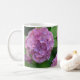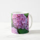 Hortensia Elegante e russa Hydrangea macrophylla pink florescendo no jardim de verão. As cores da hydrangea representam amor, harmonia e paz. A Hortensia produz florescências ao longo da estação, tanto em caules novos como antigos. Fotografia floral.