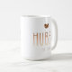 Celebrate love with this stylish “Hubby Est.” coffee mug, designed as part of the Love Is Brewing coffee-themed collection. Featuring warm neutral tones and a subtle coffee bean heart detail, this mug makes a meaningful gift for grooms, newlyweds, and coffee-loving couples.