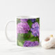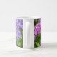 Os dias de Verão vão durar para sempre com esta na moda clássica caneca branca, decorada com híbridos azuis e roxos de uma fotografia digital.