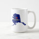 Uma silhueta azul, ou mapa, do estado do Alasca com o slogan "I Heart (Love) Alaska." Adicione seu próprio texto no verso. Venha visitar A Terra Excelente.