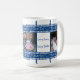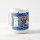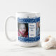 Dê a pai um presente que ele sempre lembrará! Uma caneca de presente especial e personalizada com fotos! O design está em azul escuro, com listras brancas na borda e adornada com "I Heart PAI" em branco, atravessando a borda superior e inferior.