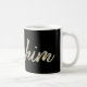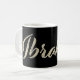 Eine sehr schöne edle personalisierte Tasse / Kaffeetasse / Teetasse im whitegold Lettering Look auf schwarz für Ibrahim.