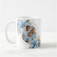 Família linda, personalizada, PHOTO MUG, com flores de buquê de poinsettia pintadas manualmente, em azul pastel e cor dourada. É fácil editar adicionando seu texto. FELIZMENTE FÉRIAS OU NATAL FELIZ. Faz com que etiquetas de excelente enviem para a família e amigos durante o feriado - excelente!