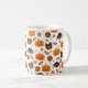 Um padrão super fofo de halloween. Nesta ilustração você pode ver abóboras, aranhas, corujas, estrelas e doces. O esquema de cores deste design de halloween é laranja, preto e branco.