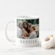 Elegante, foto, frase de irmandade bestie mug. As canecas de amizade são uma maneira maravilhosa de celebrar os amigos em sua vida. Escrito moderno e manuscrito com uma citação de irmandade e foto será uma caneca de café de guardanapo tesourada. A personalização com sua foto é fácil e os outros campos são personalizáveis se você quiser mudar a citação. Encontre mais presentes personalizáveis de amigos na coleção de presentes de amizade personalizada na loja Beautily Abstrato.