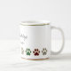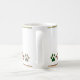 Uma caneca de café de Natal super fofa e festiva com design de pata de cão em design de verificação de búfalos vermelho, verde, preto e branco, com estrutura de folhas. Personalize o texto editando o modelo.