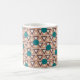 Esta caneca tem uma design geométrica de triângulos castanho e bronzeados repetidos com círculos de turquesa em cima de um campo esbranquiçado. Quer o mesmo design em cores diferentes? Me mande mensagem.