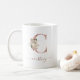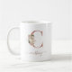 Caneca De Café Inicial "C" Monograma em Marfim Floral Dourado Ros