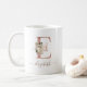 Caneca De Café Inicial "E" Monograma em Marfim Floral Dourado Ros