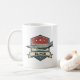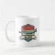 Esta caneca personalizada em estilo retrô apresenta a icônica aeronave F-4 Phantom em um emblema desgastado que é decorado com listras vermelhas, brancas e azuis em negrito, estrelas e uma faixa para nome personalizado.