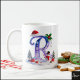 Caneca De Café Iridescent Christmas Letter R with Snowman
