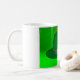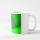Uma fotografia de um Chapéu Derby Verde que é brilhante e colorido com uma banda prateada com quatro trevas de folha, que está em um GOMA COFFEE.