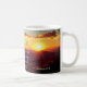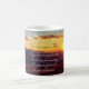 A linda caneca de escritura mostra um pôr do sol incrível sobre as montanhas e apresenta a Bíblia Verse Isaiah 61:3, "Ele me mandou... Para lhes dar beleza pelas cinzas, o óleo de alegria pelo luto, A peça de elogio pelo espírito do céu."~