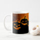 caneca assustadora para um Halloween assustador! Jack-O-Lanternas sorrindo no escuro é certo que lhe dá um susto enquanto bebe sua bebida quente no ar legal de outubro.