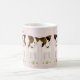 Esta caneca de café da Parson / Jack Russell Terriers para amantes JRT apresenta uma linhagem ilustrada de seis "Jacks" com várias marcas de ouvido marrom e preto, cada uma com uma inclinação adorável da cabeça e uma bola de tênis nos seus pés sobre um fundo rosado; o nome é personalizável - linha Jack Russell Terriers © katz_d_zynes 2019